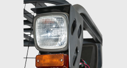 帶防護(hù)前大燈提供照明, 增強(qiáng)夜間工作安全。 |